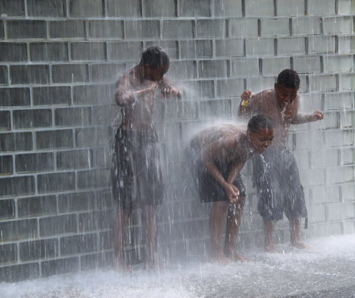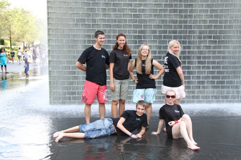 We went out to the Millenium Park (to the fountains) to interview people and I was amazed, that almost every second person volunteers. WOW! It is really a basic thing here in the States. I took the lead and we got about 13 interviews. We also got to play in the water and fool around in the heat. I took a lot of pictures of all the little kids playing by the fountains. They were so cute and carefree.