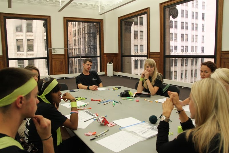 On Thursday we met up with others at nine o'clock at the office as usual. The train was very crowded, so we got a free ride (the conductor had too much work) and Greta had to stand all the way from Buffalo Grove to Chicago. In the morning Suzanne told us about her volunteerism projects and about the homeless- shelter, she directs. It is amazing how much the Wexler family volunteers and how passionate they are about it.
